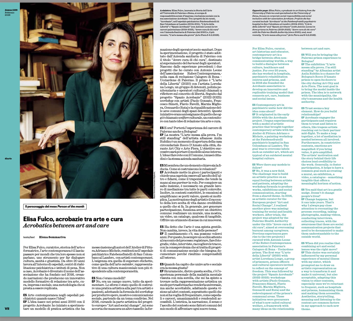 Domus di Febbraio 2026 ospita l’intervista ad Elisa Fulco realizzata da Elena Sommariva in cui si racconta il modello portato avanti dall’Associazione Acrobazie.